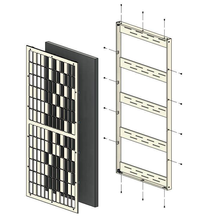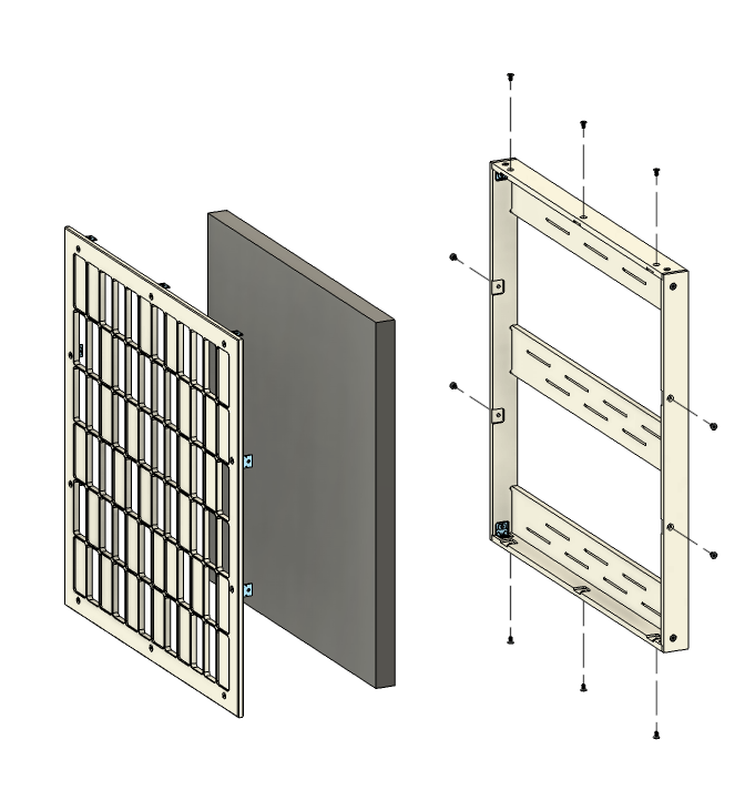 Reinstall the diffuser face. Align the diffuser face with the panel frame and secure it using the bolts removed in step 1. Ensure all bolts are tightened evenly to avoid warping the diffuser face. Take care to not damage the foam core with fastners or the integrated metal brackets during this step.