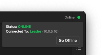 The online status of a processor can be viewed and modified by the Online indicator in the upper right corner of One.